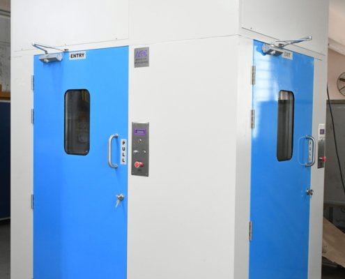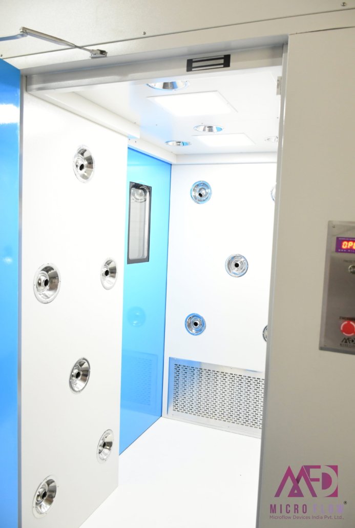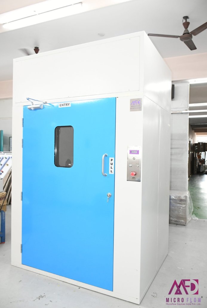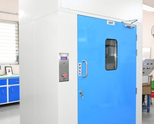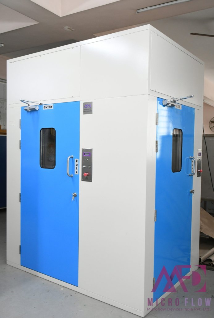 Our customised designing of Air Showers is installed at the entrance of the clean room for the purpose of removing the deposited particles from personnel prior to entering the clean room with the help of high velocity HEPA filters.